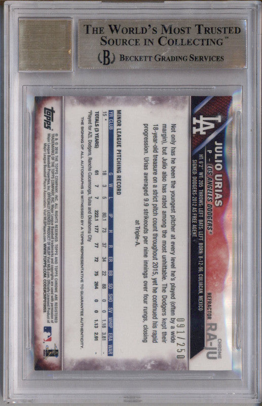 2016 Topps Chrome Rookie Autograph Purple Julio Urias RC Auto /250 BGS 9.5