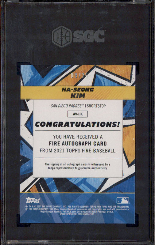 2021 Topps Fire Rookie Autograph Magenta Ha-Seong Kim RC Auto /25 SGC 9.5