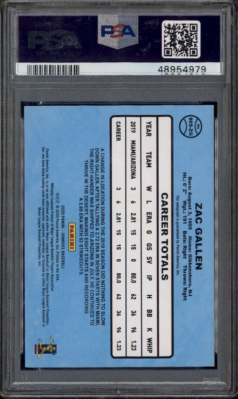 2020 Panini Donruss Retro 1986 Signatures Retro Black Zac Gallen Auto 1/1 PSA 8
