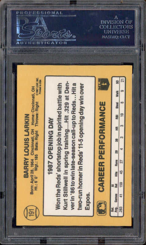 1987 Donruss Opening Day #191 Barry Larkin PSA 10