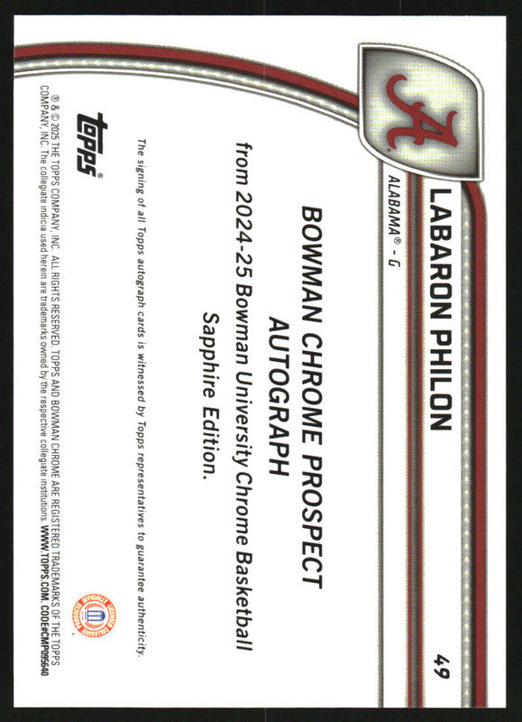 2024 Bowman University Chrome Sapphire Black Refractor Labaron Philon Auto /10