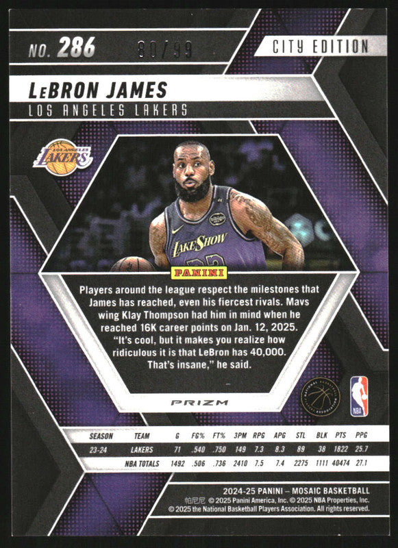 2024-25 Panini Mosaic Fast Break Red Mosaic #286 LeBron James City Edition /99