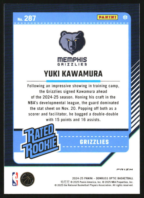 2024-25 Panini Donruss Optic Rated Rookie Photon #287 Yuki Kawamura RC