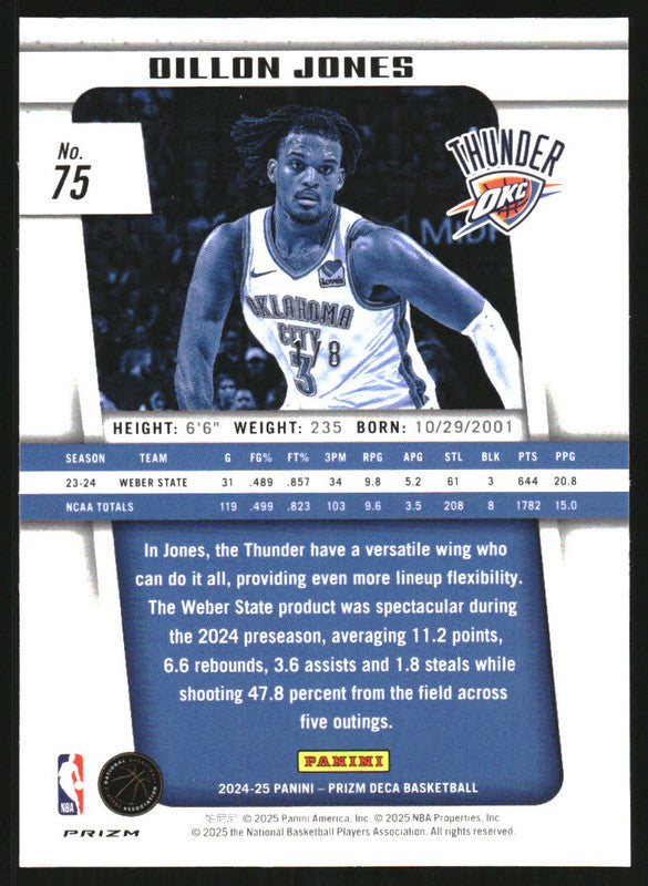 2024-25 Panini Prizm Deca Black Gold Shimmer Prizm FOTL #75 Dillon Jones RC /8