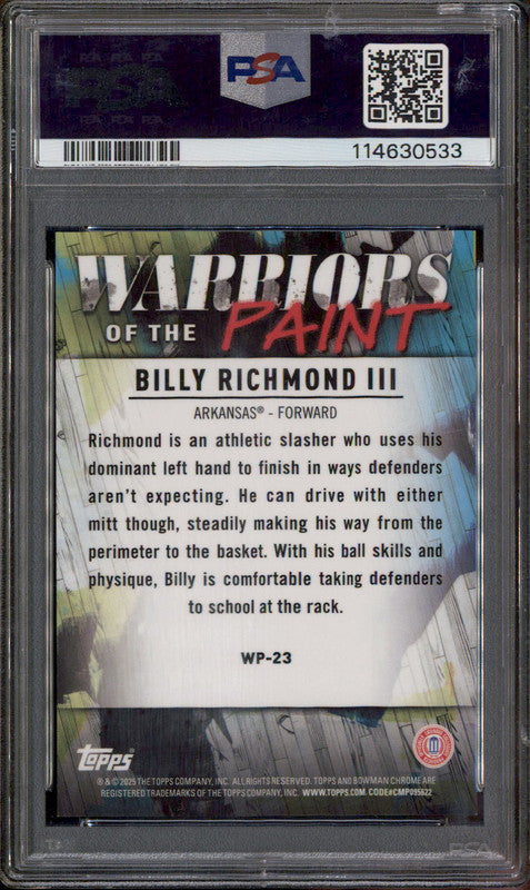 2024 Bowman University Warriors Paint Orange Billy Richmond III /25 PSA 10