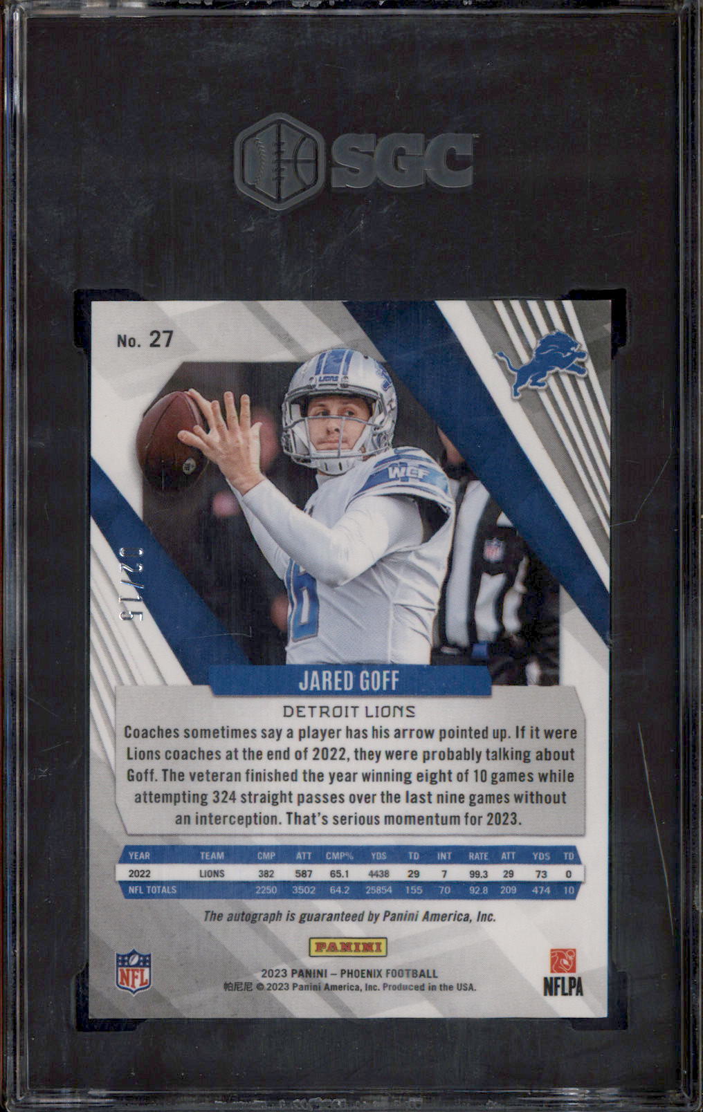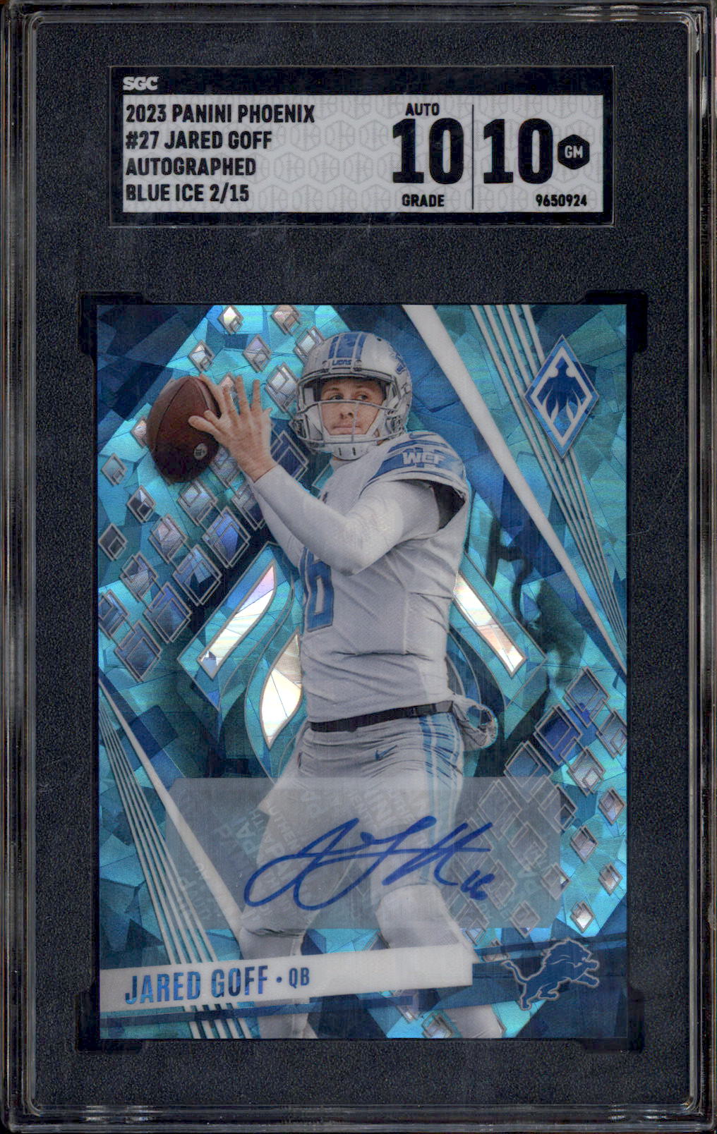 2023 Panini Phoenix Autographs Blue Ice #27 Jared Goff Autograph Auto /15 SGC 10