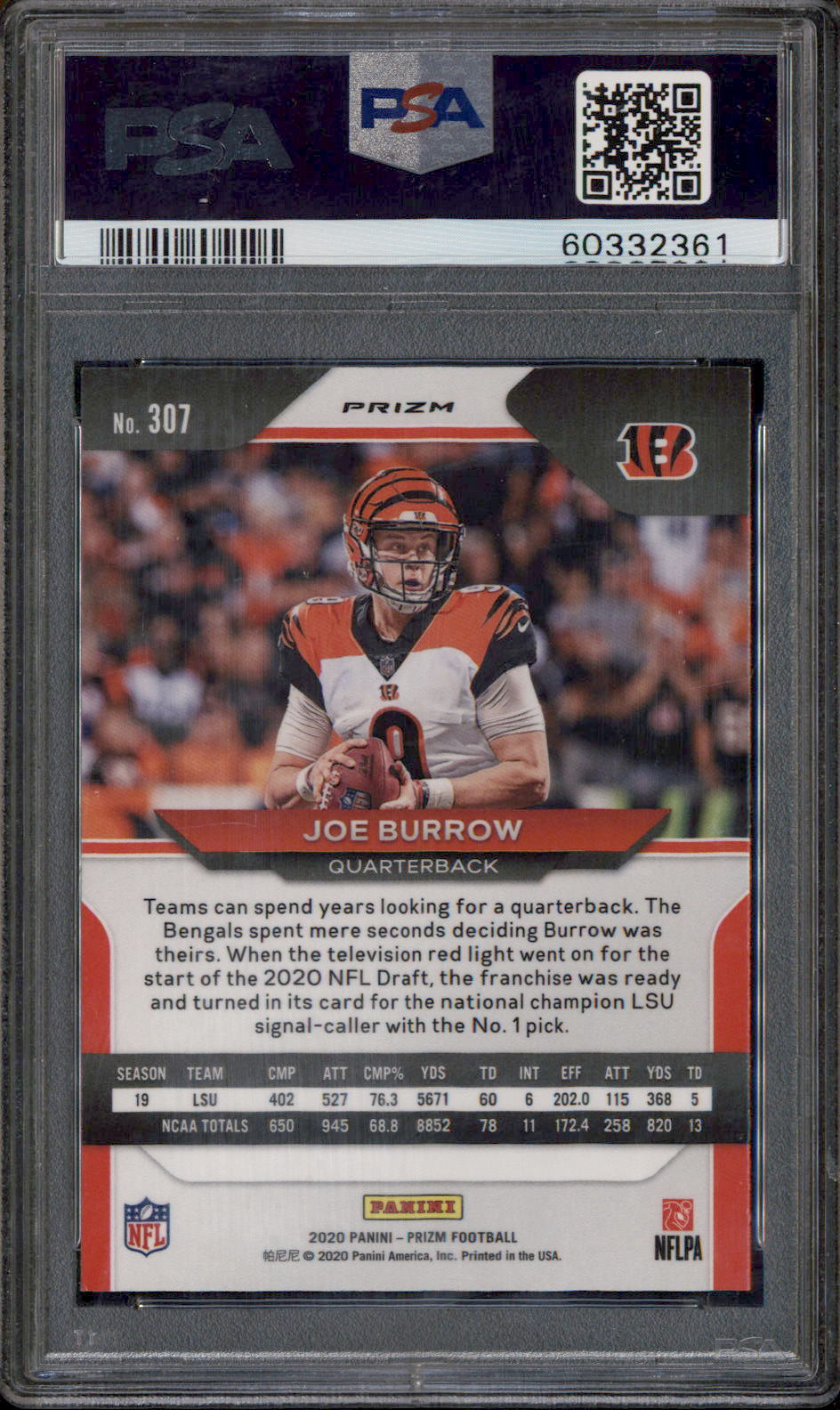 2020 Panini Prizm Silver Prizm #307 Joe Burrow RC PSA 9