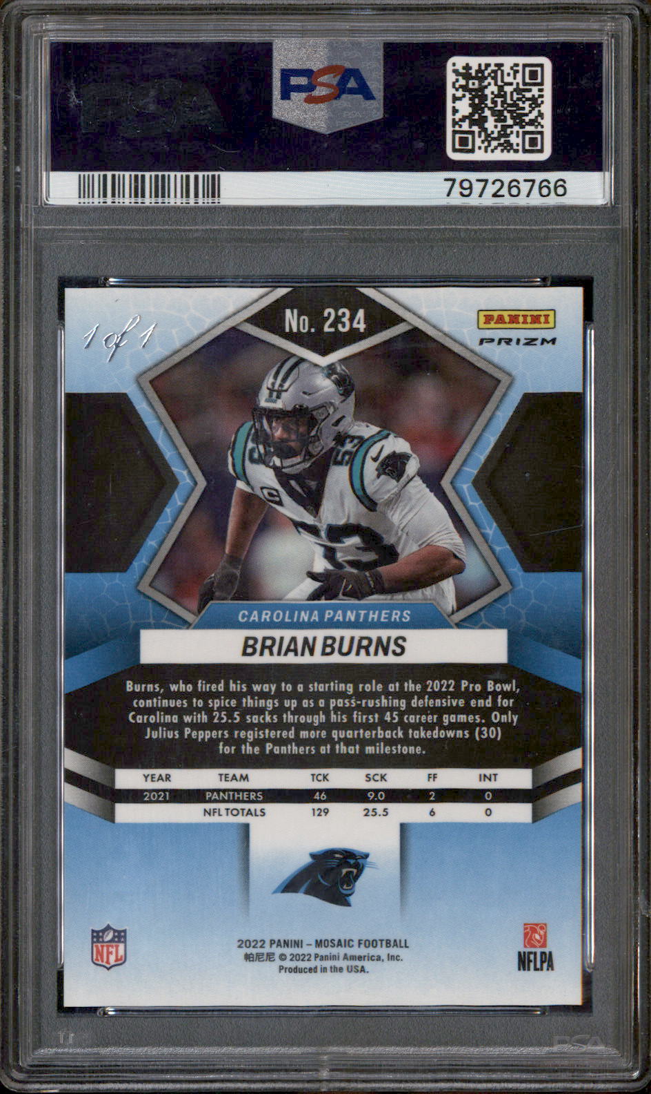 2022 Panini Mosaic Mosaic Black #234 Brian Burns 1/1 PSA 10