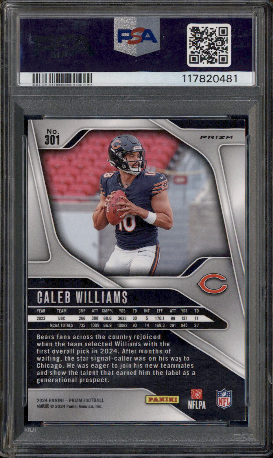 2024 Panini Prizm Orange Ice Prizm #301 Caleb Williams RC PSA 6
