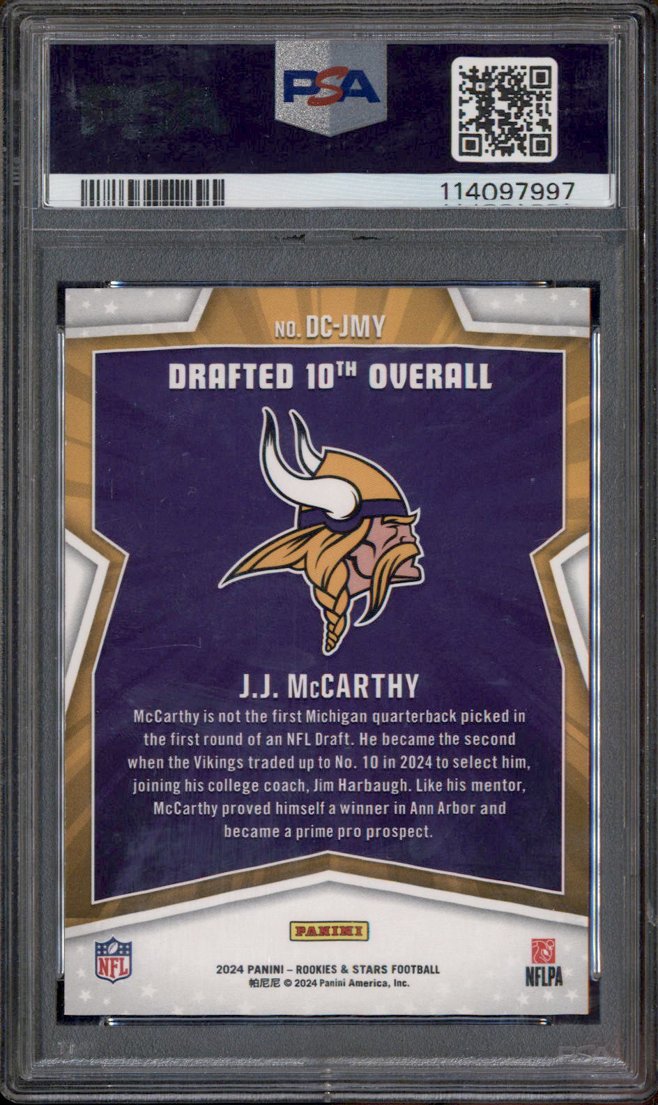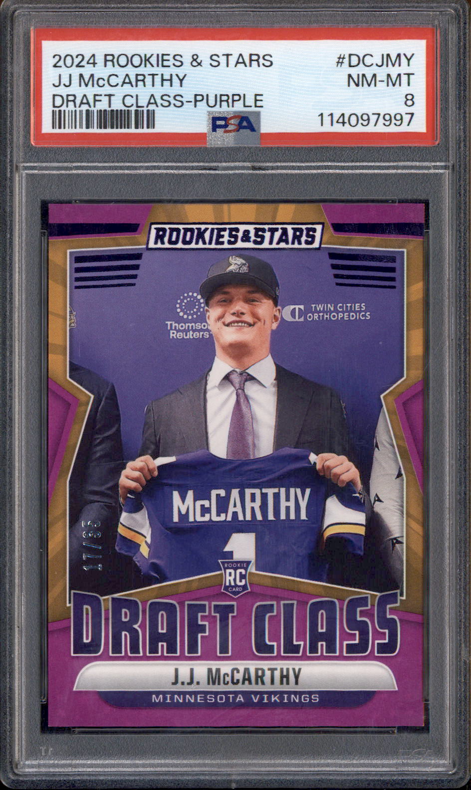 2024 Panini Rookies & Stars Draft Class Purple #DCJMY J.J. McCarthy RC /35 PSA 8