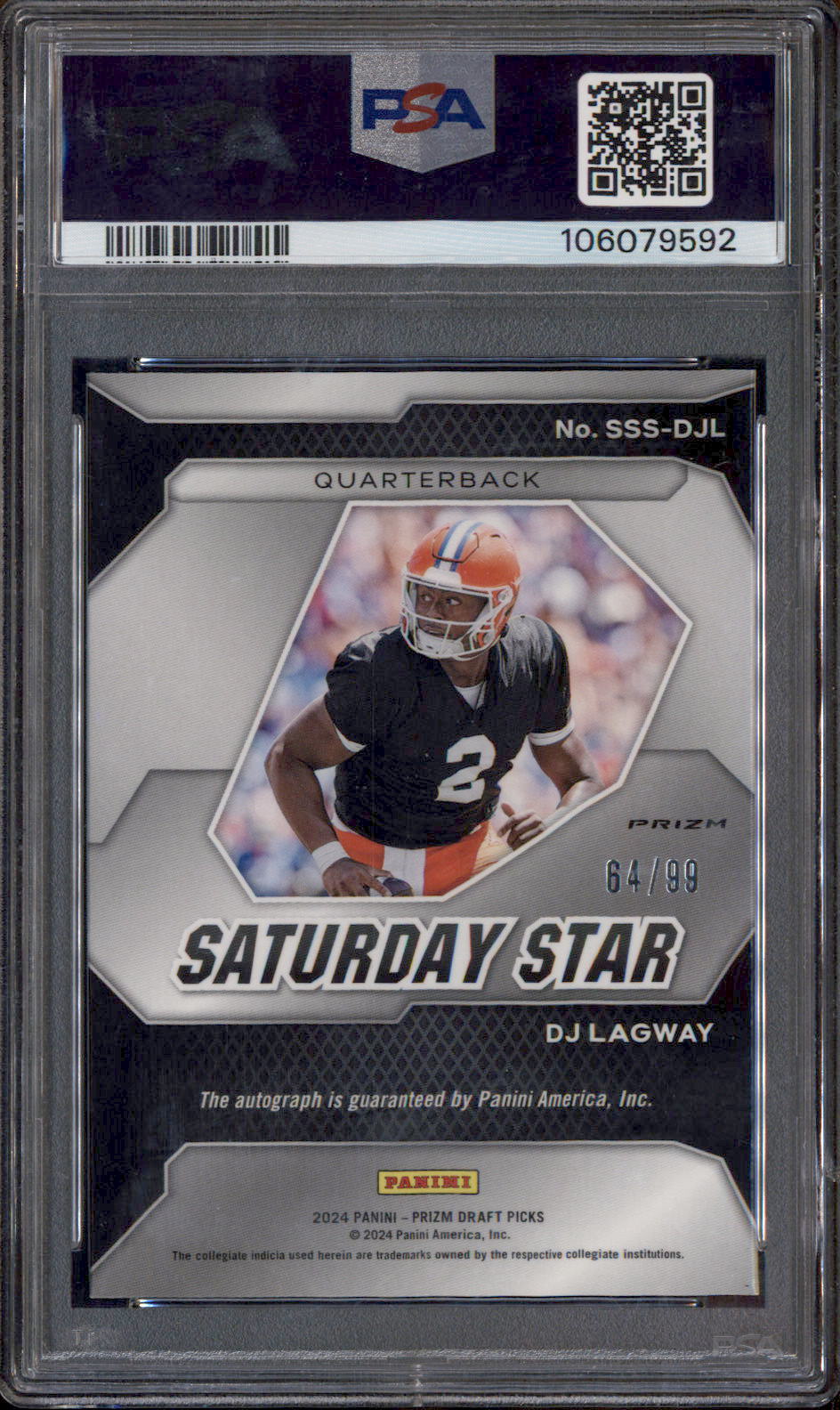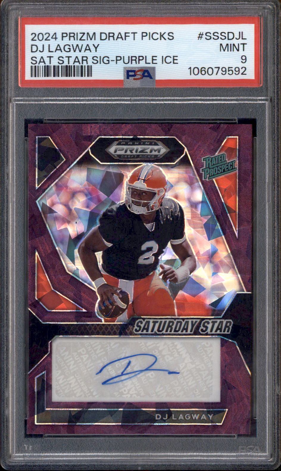 2024 Panini Prizm Collegiate Saturday Star Purple Ice DJ Lagway Auto /99 PSA 9