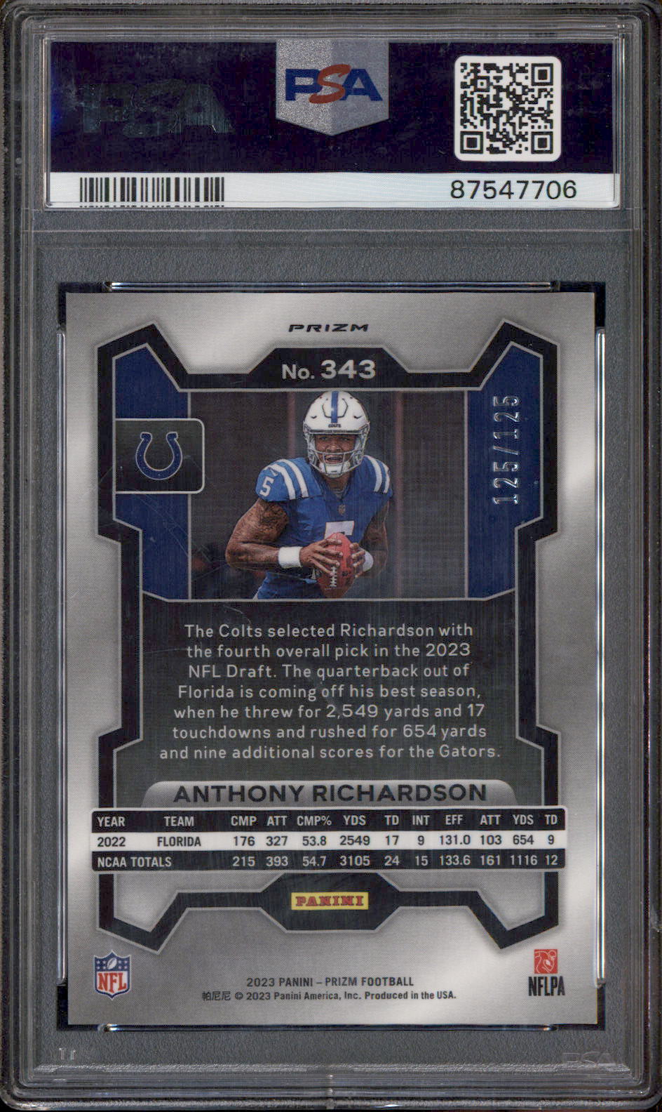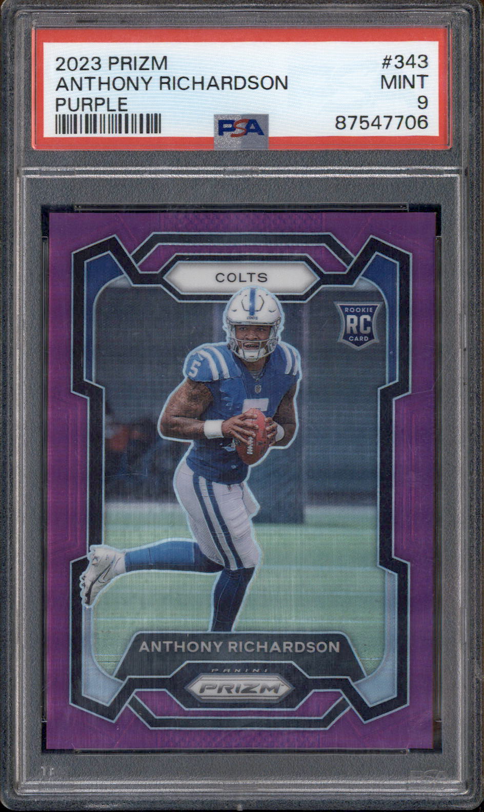 2023 Panini Prizm Purple Prizm #343 Anthony Richardson RC /125 PSA 9
