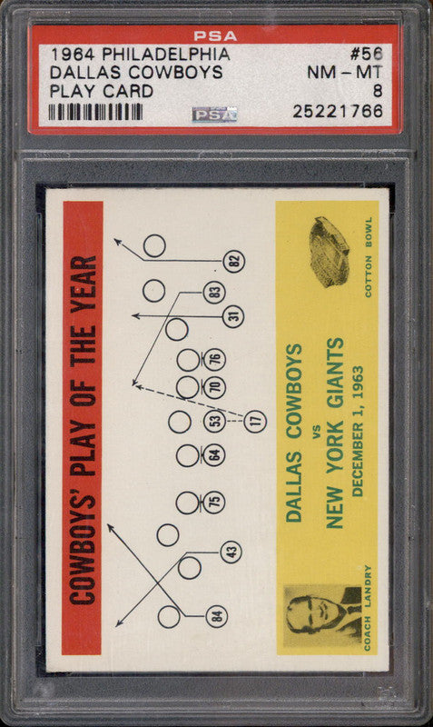 1964 Philadelphia #56 Cowboys Play of the Year - Tom Landry PSA 8