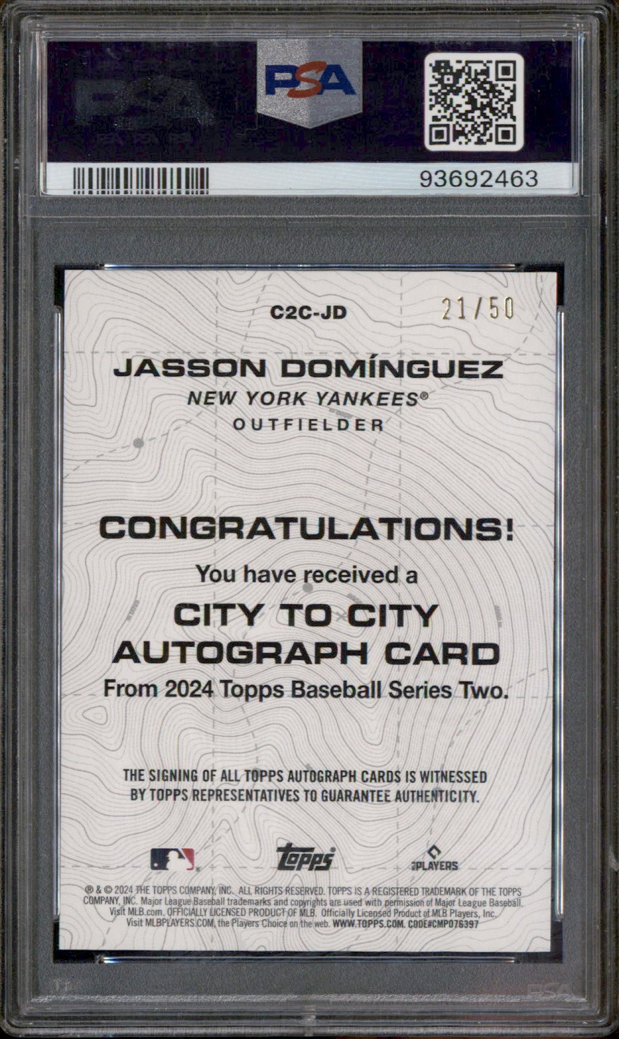 2024 Topps City to City Autographs Gold Jasson Dominguez RC Auto /50 PSA 10