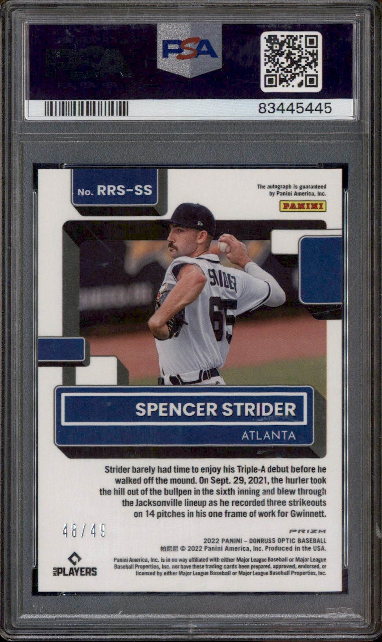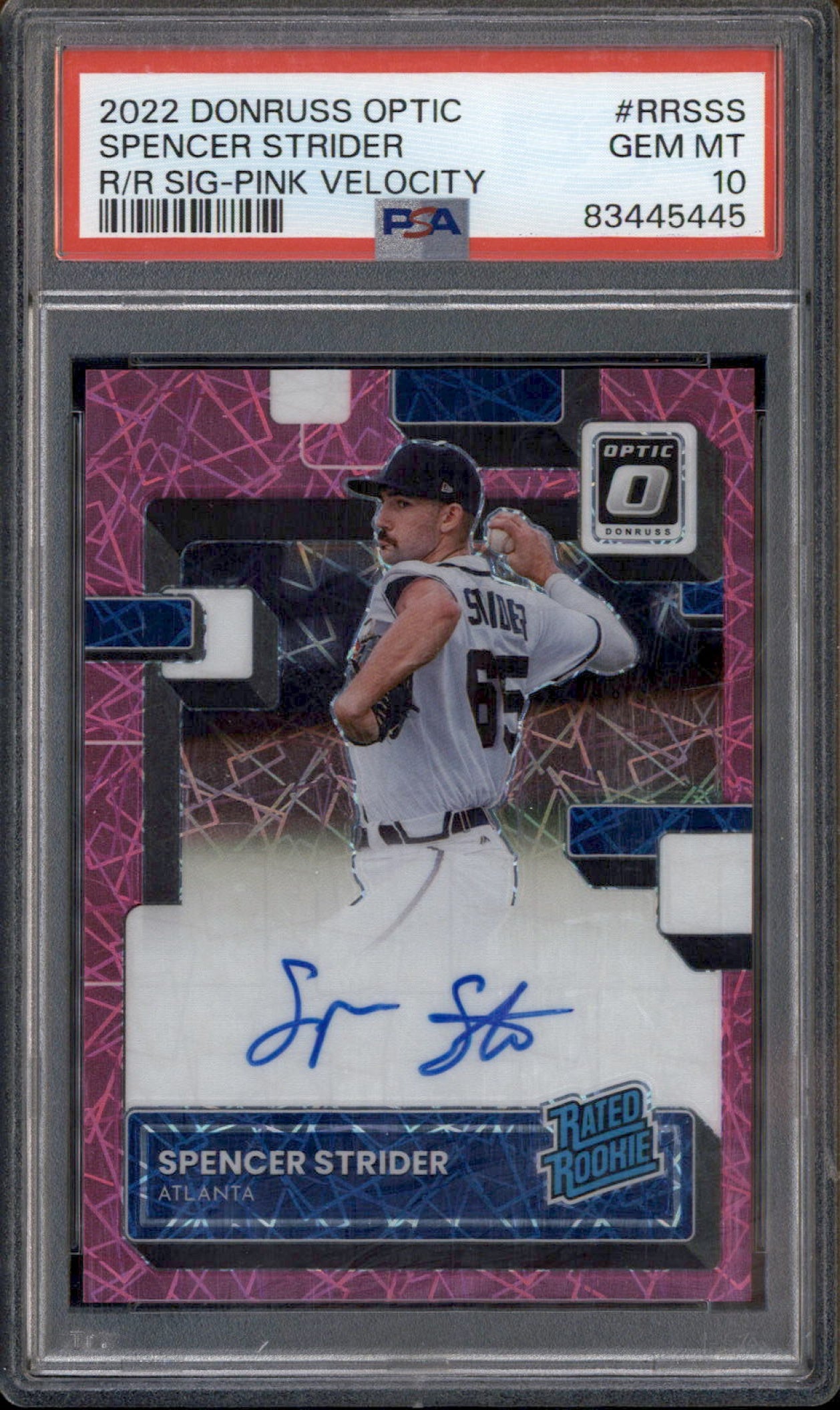 2022 Donruss Optic Signatures Pink Velocity Spencer Strider RC Auto /49 PSA 10