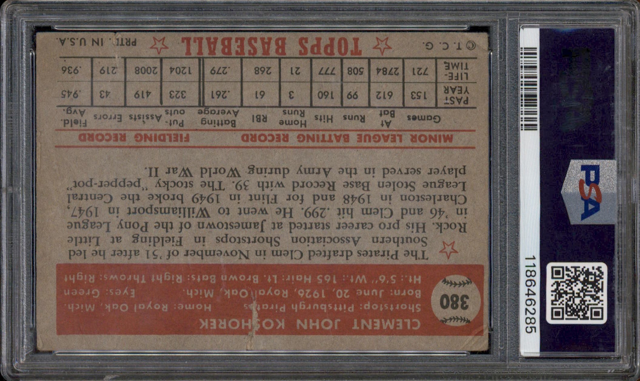 1952 Topps #380 Clem Koshorek RC PSA 1
