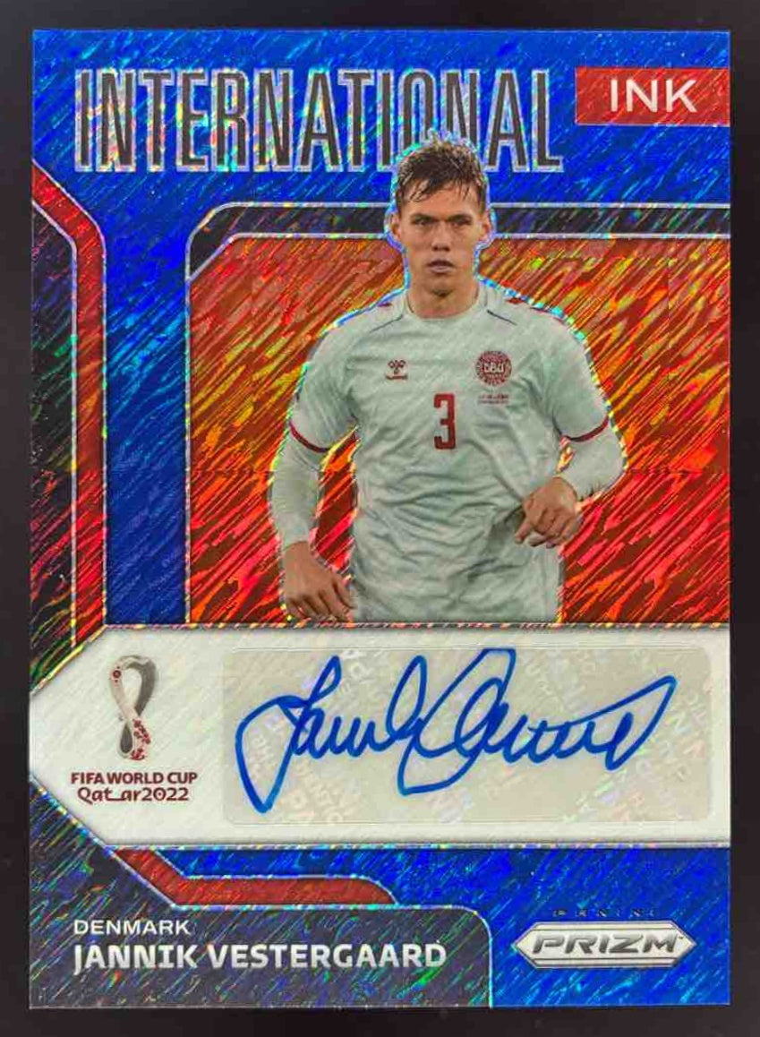 2022 Prizm World Cup International Ink Blue Shimmer Jannik Vestergaard Auto