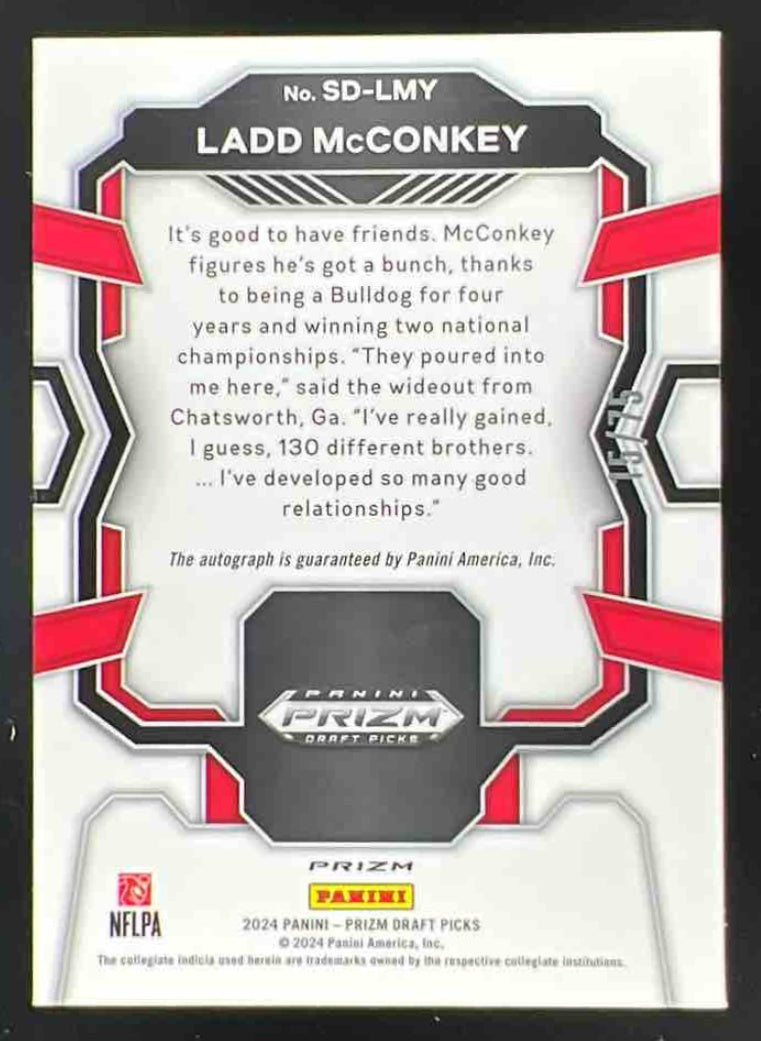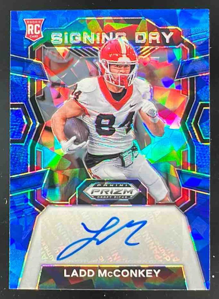 2024 Prizm Collegiate Draft Signing Day Blue Ice Ladd McConkey RC Auto /75