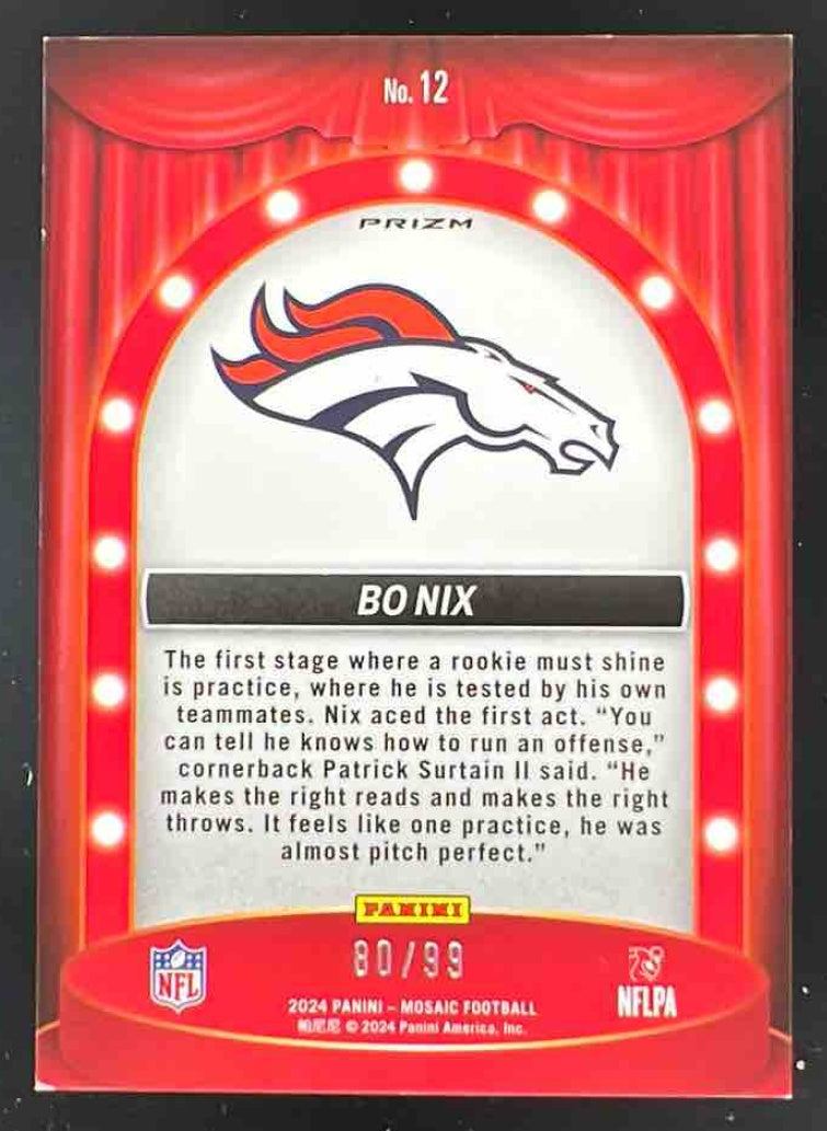 2024 Panini Mosaic Center Stage Blue #12 Bo Nix RC /99