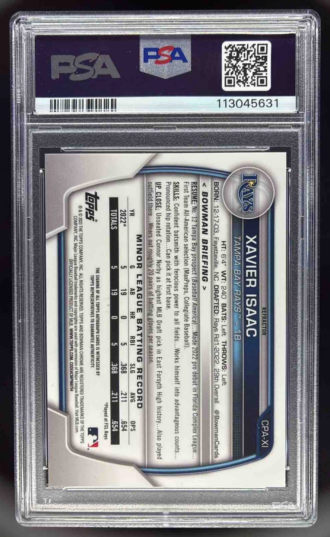 2023 Bowman Chrome Refractor #CPA-XI Xavier Isaac Autograph RC Auto /499 PSA 10