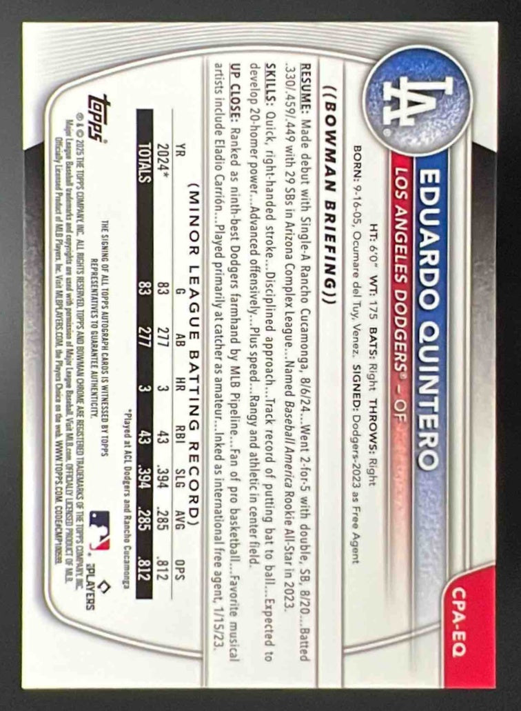 2025 Bowman Chrome Autographs #CPA-EQ Eduardo Quintero RC Auto
