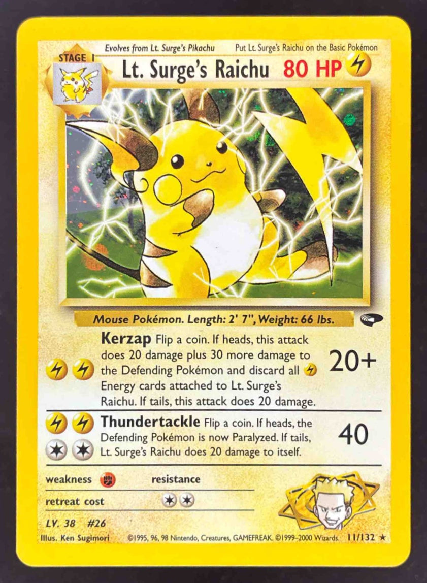 2000 Pokemon Gym Challenge #11/132 Lt. Surge's Raichu Holo