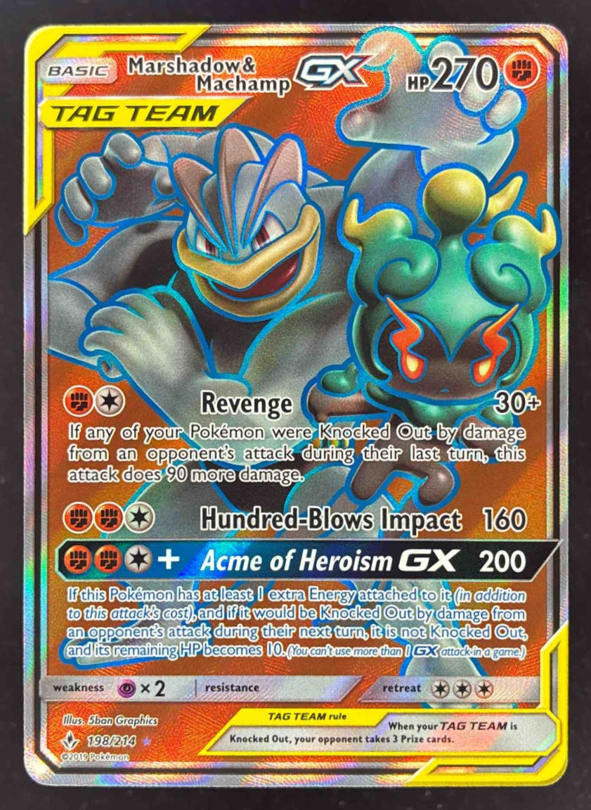 2019 Pokemon Sun & Moon Unbroken Bonds #198/214 Marshadow & Machamp Tag Team