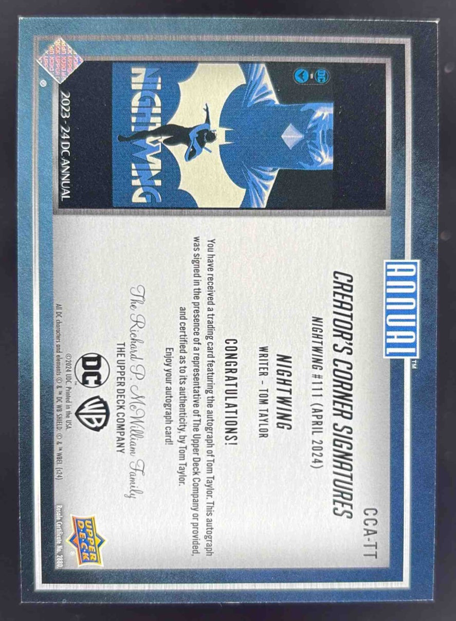 2023-24 Upper Deck DC Annual Creators Corner #CCA-TT Nightwing - Tom Taylor Auto