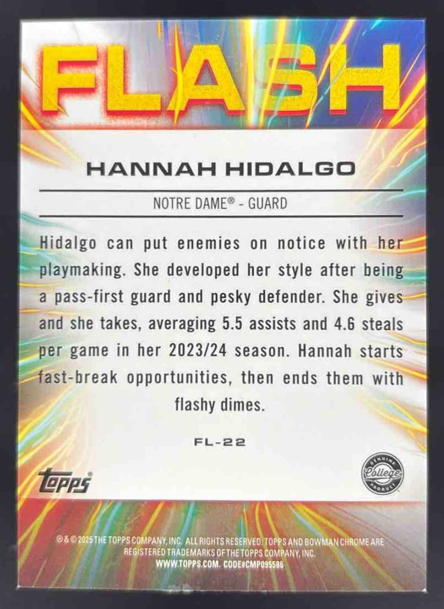 2024-25 Bowman University Chrome Flash Orange Refractor #FL22 Hannah Hidalgo /25