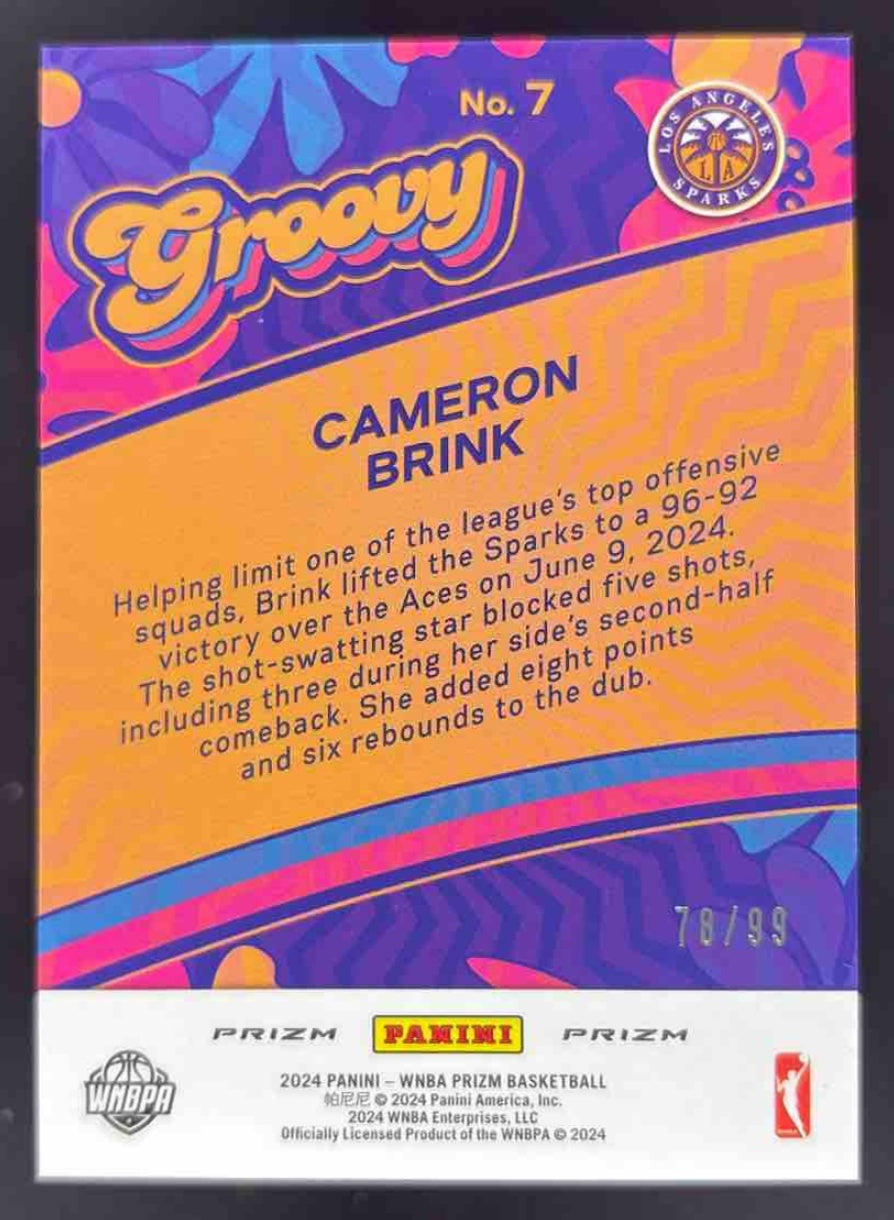 2024 Panini WNBA Prizm Groovy Red Prizm #7 Cameron Brink RC /99