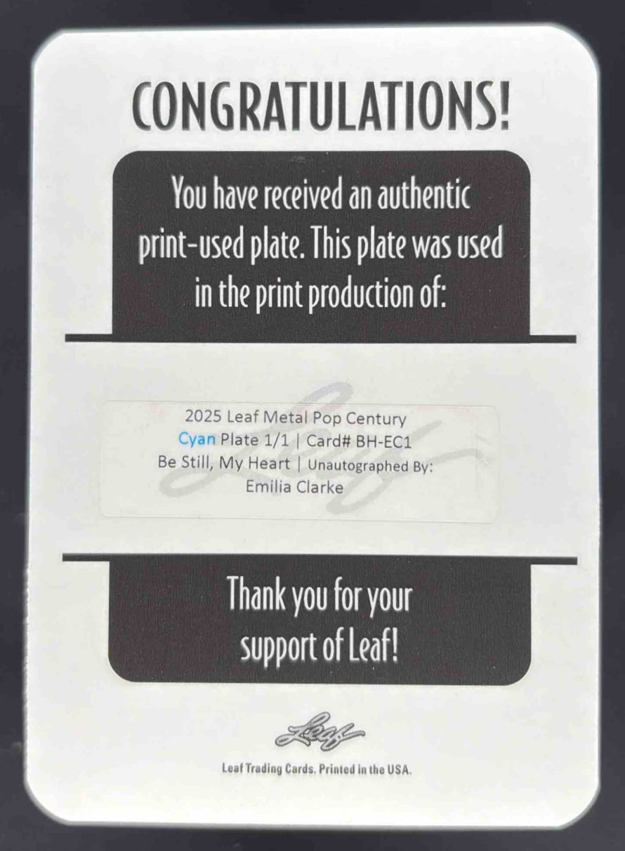 2025 Leaf Pop Century Be Still My Heart Printing Plate Cyan Emilia Clarke 1/1