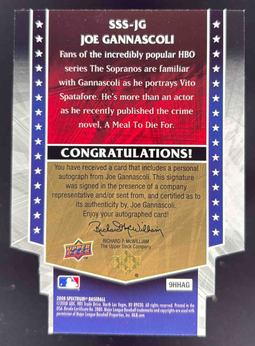 2008 Upper Deck Spectrum of Stars Signatures Die Cut Joe Gannascoli Auto /25