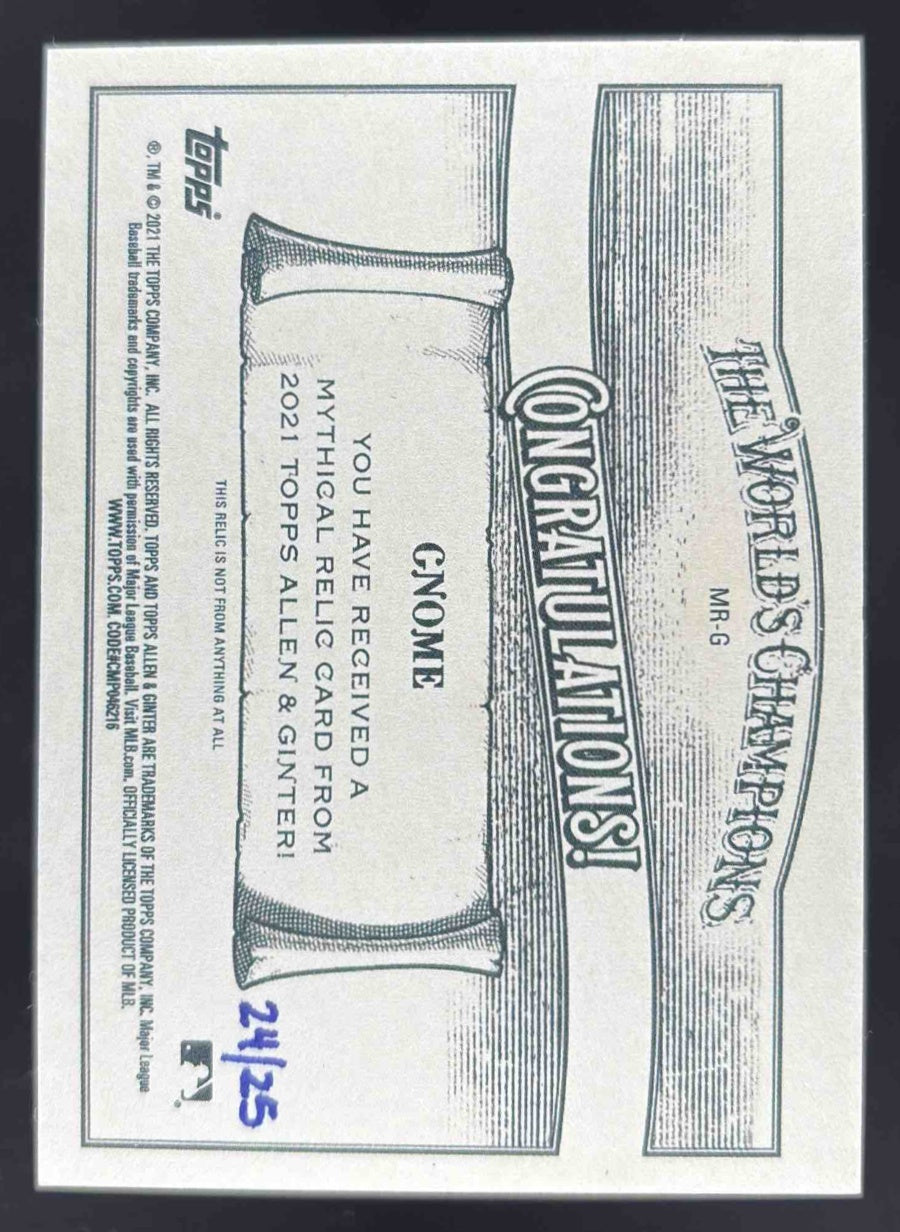 2021 Topps Allen & Ginter Mythical Relics #MR-G Gnome /25