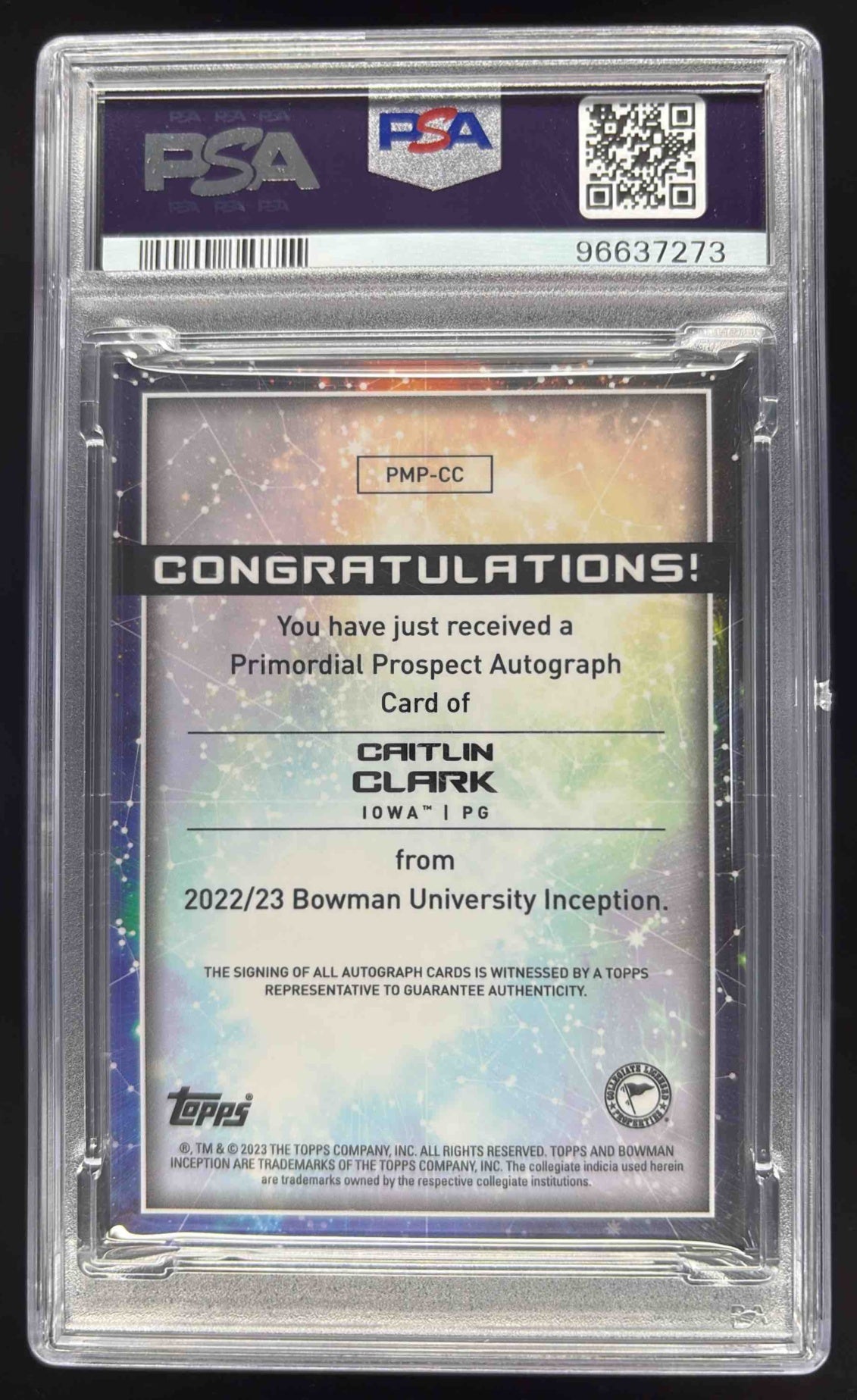 2022 Bowman University Inception Primordial Caitlin Clark Auto /99 PSA 8.5