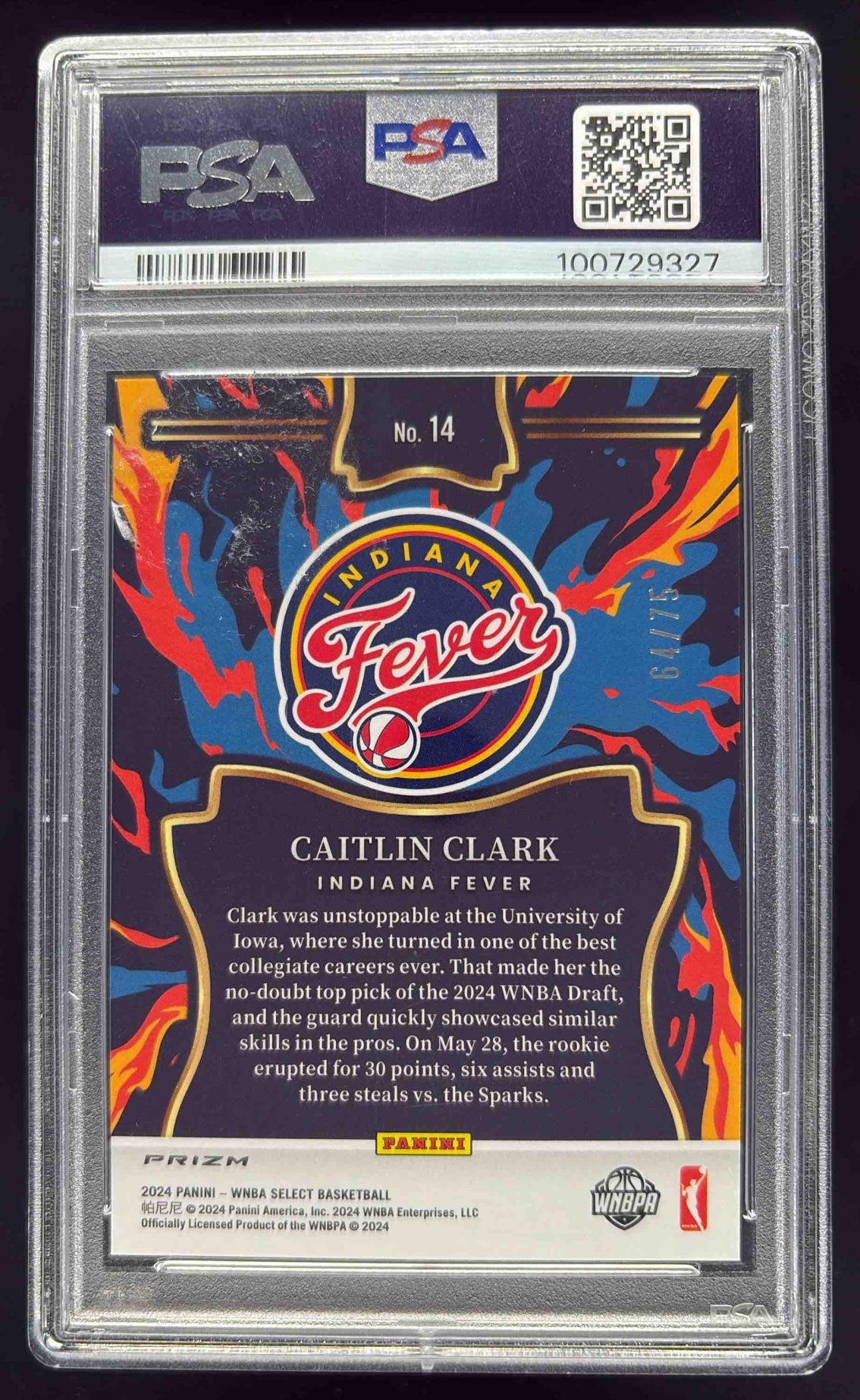 2024 Select WNBA En Fuego White Disco Prizms #14 Caitlin Clark RC /75 PSA 9
