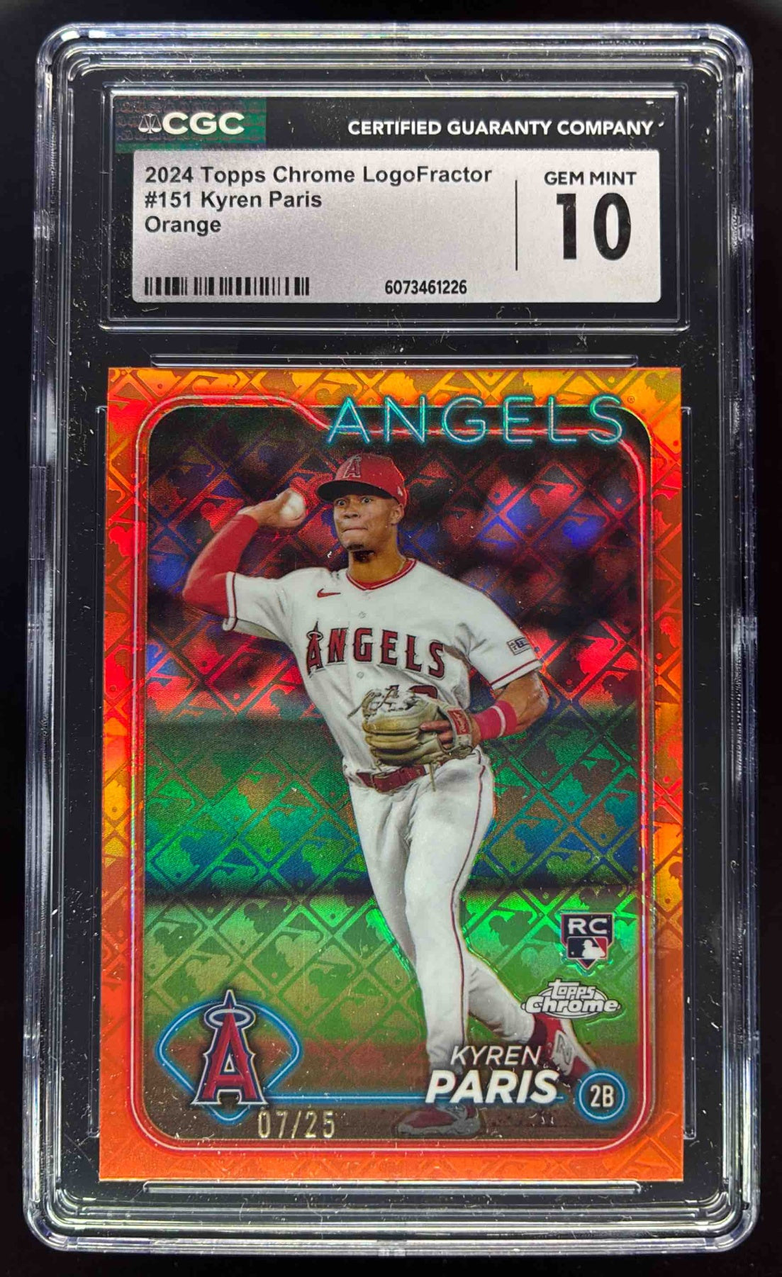 2024 Topps Chrome Logofractor Orange MLB Refractor Kyren Paris RC /25 CGC 10
