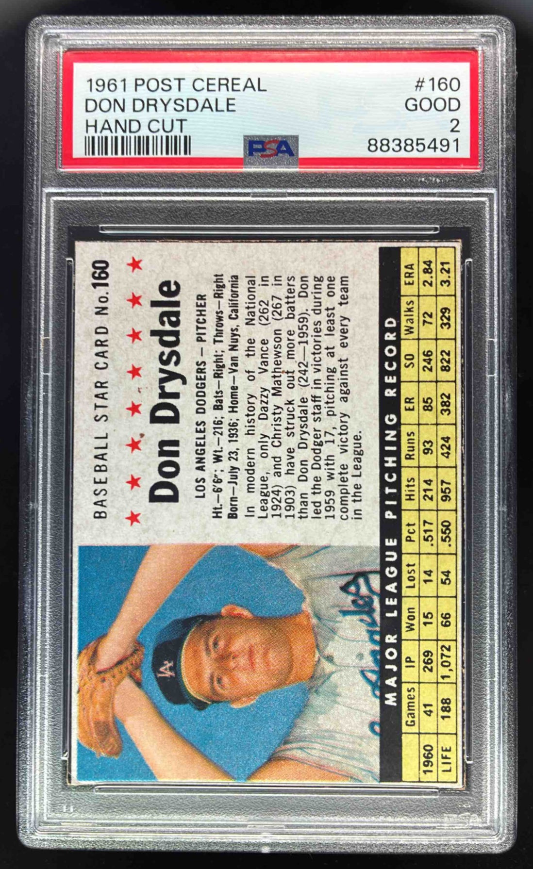 1961 Post Cereal Hand Cut #160 Don Drysdale PSA 2