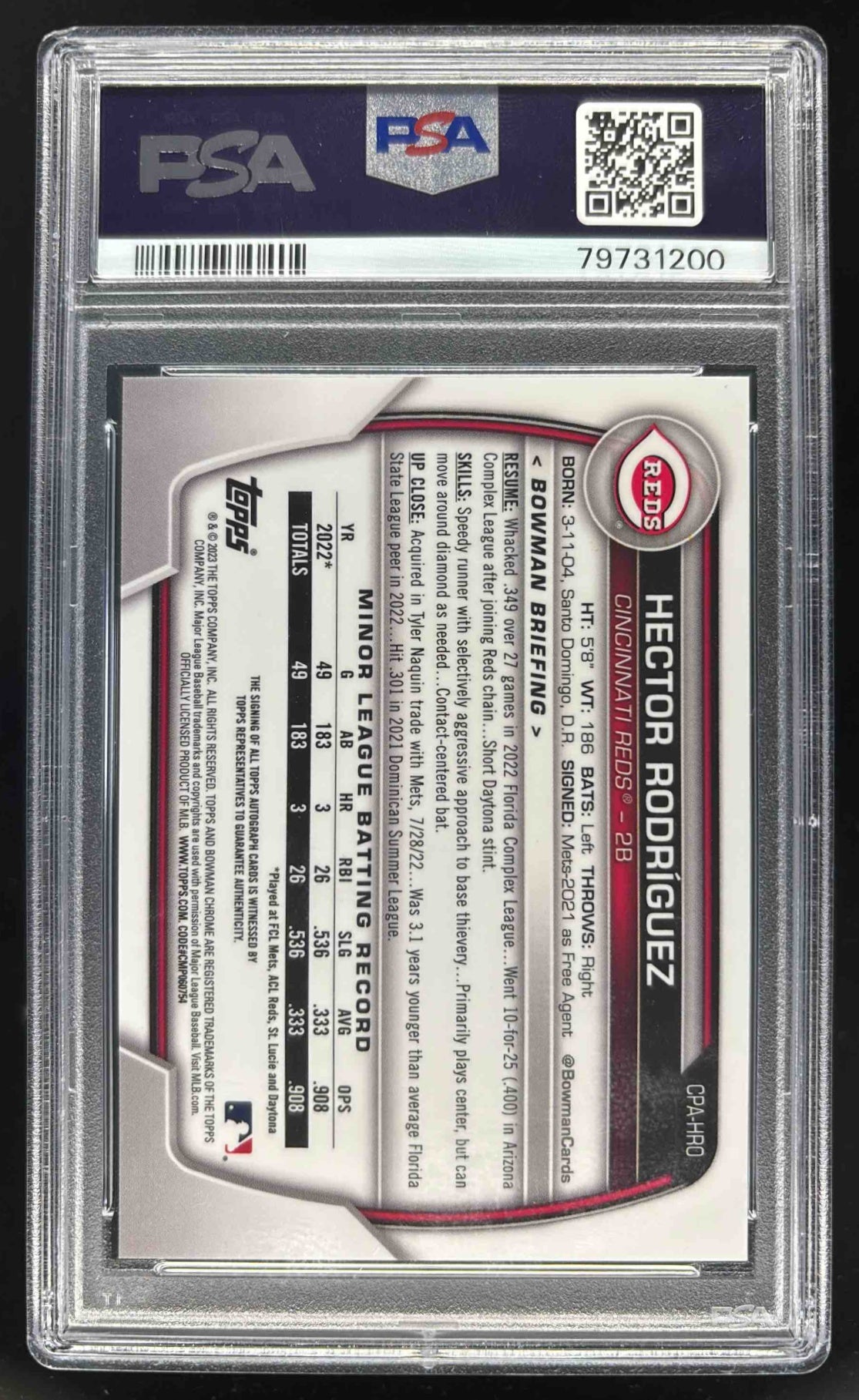 2023 Bowman Chrome Autographs Speckle Hector Rodriguez RC Auto /299 PSA 10