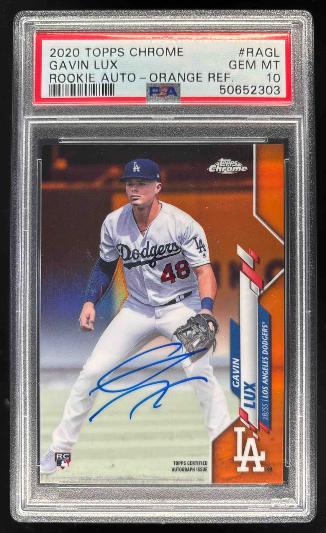 2020 Topps Chrome Rookie Orange Refractor #RA-GL Gavin Lux RC Auto /25 PSA 10