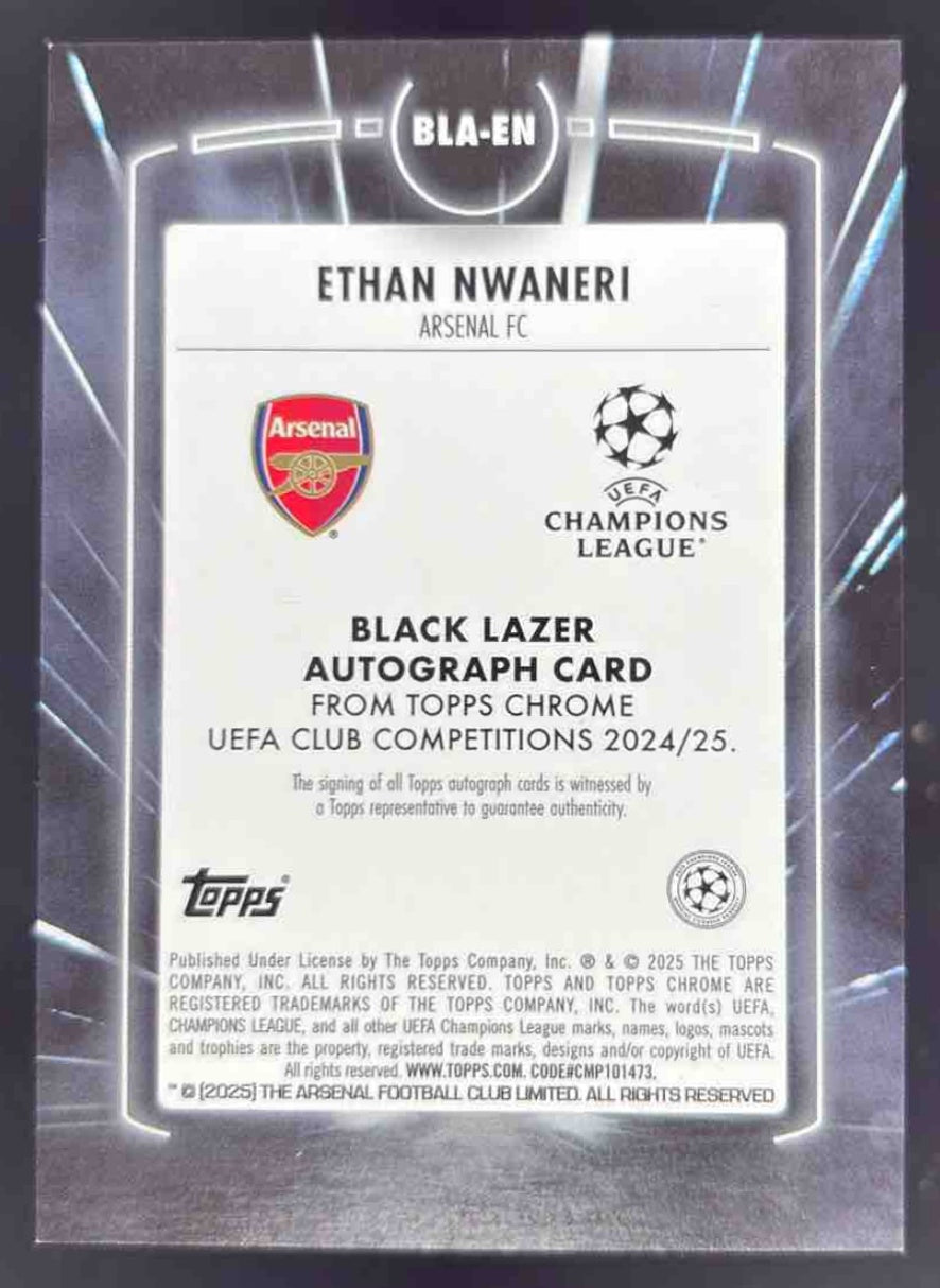 2024 Topps Chrome Black Lazer Neon Green Lazer #BLA-EN Ethan Nwaneri RC Auto /99