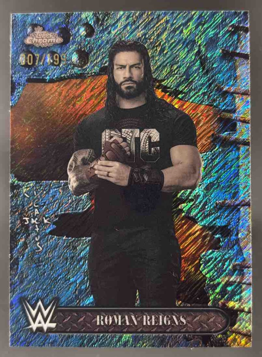 2025 Topps Chrome WWE x Cactus Jack Aqua Shimmer Refractor #25 Roman Reigns /199