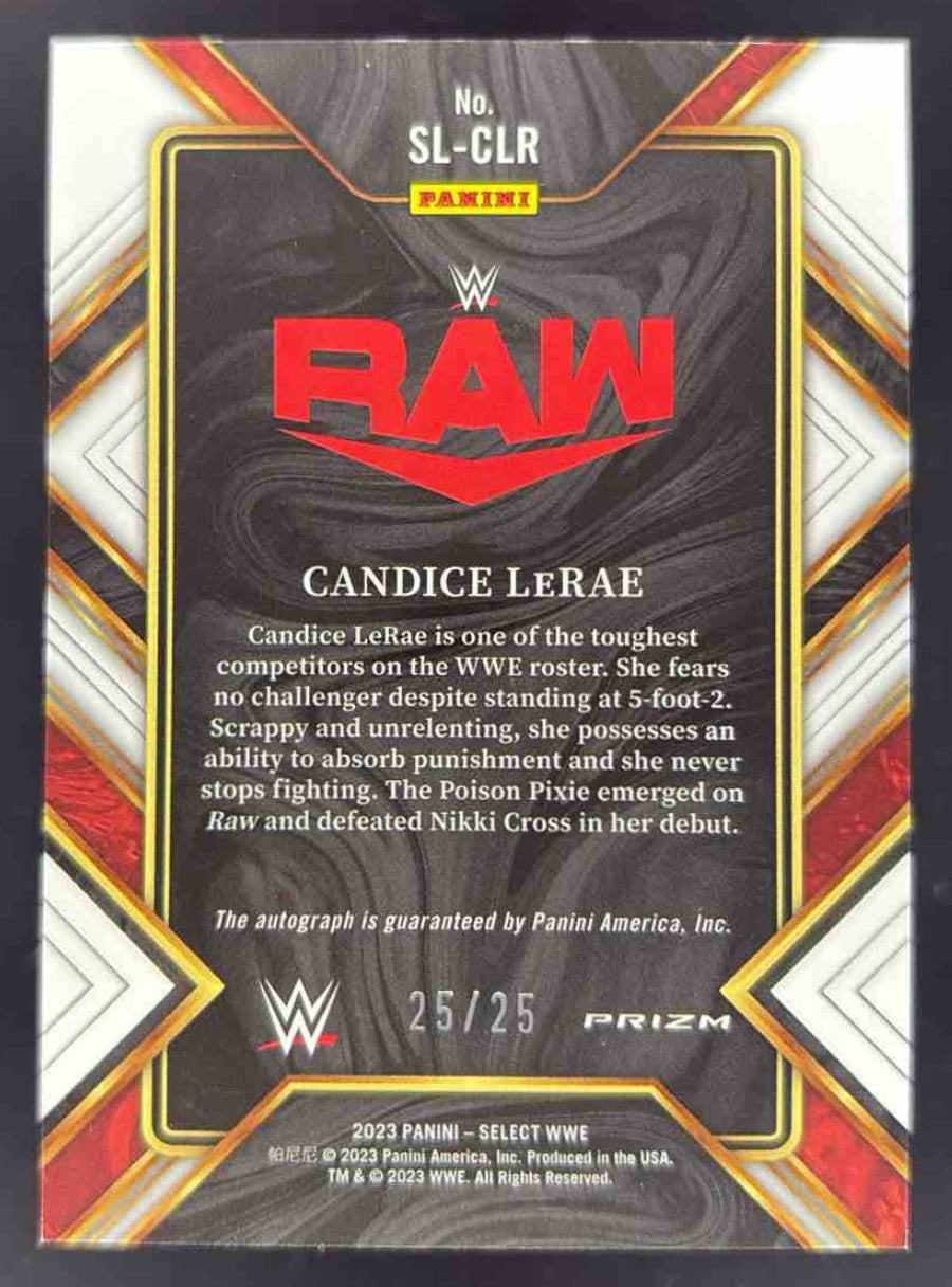 2023 Panini Select WWE Selections Tie Dye Prizms #SL-CLR Candice LeRae Auto /25