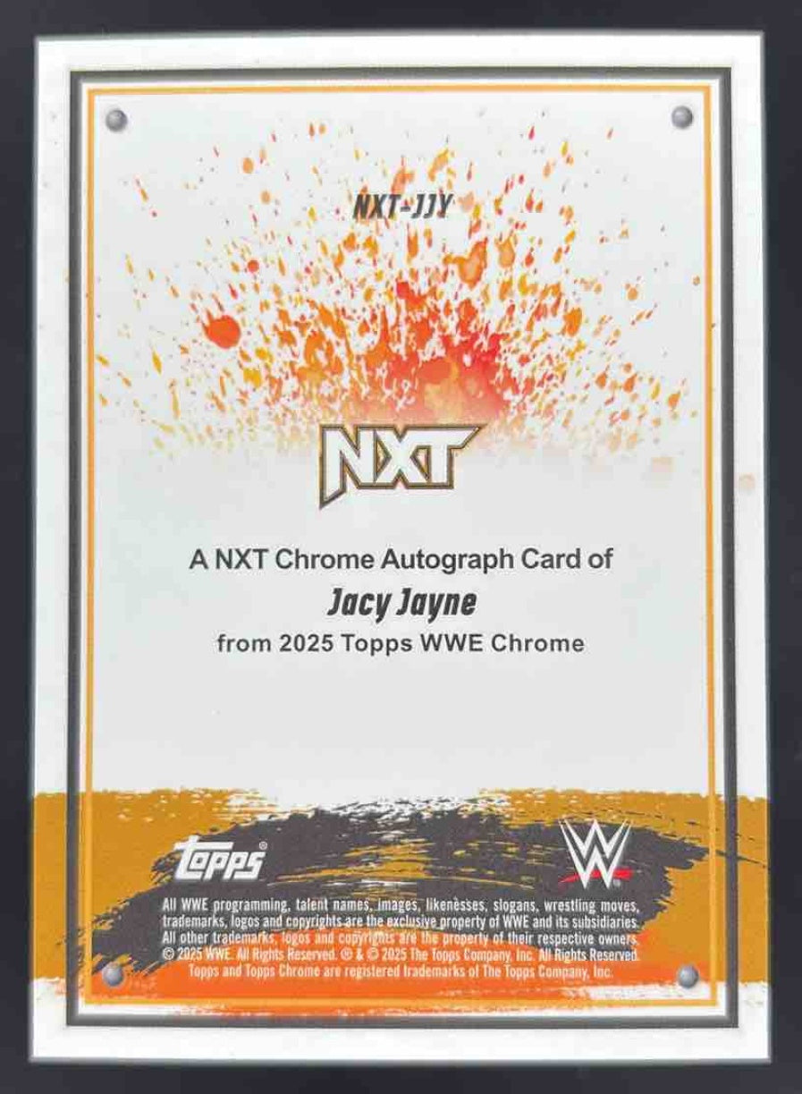 2025 Topps Chrome Sapphire WWE NXT Orange Refractor #NXT-JJY Jacy Jayne Auto /25