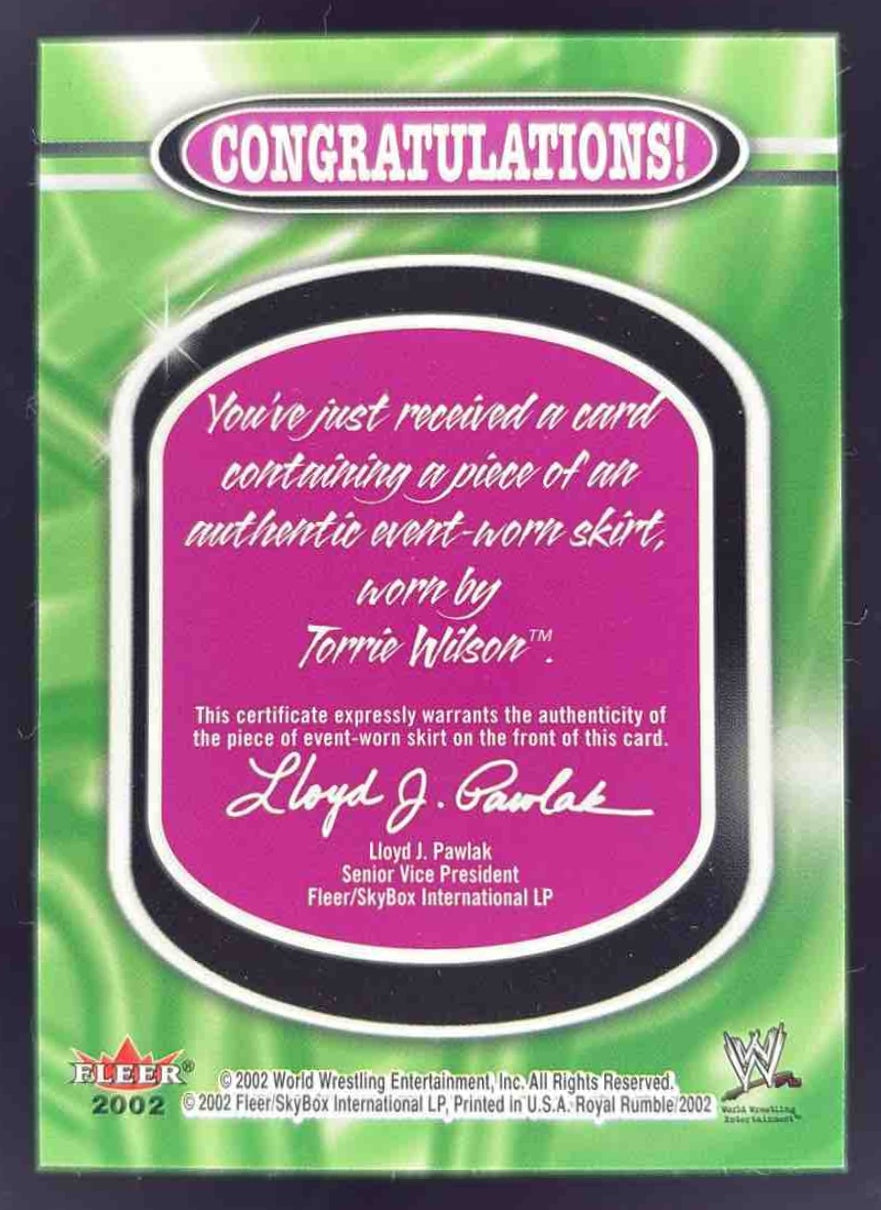 2002 Fleer WWE Royal Rumble Divastating Memorabilia #NNO Torrie Wilson Skirt