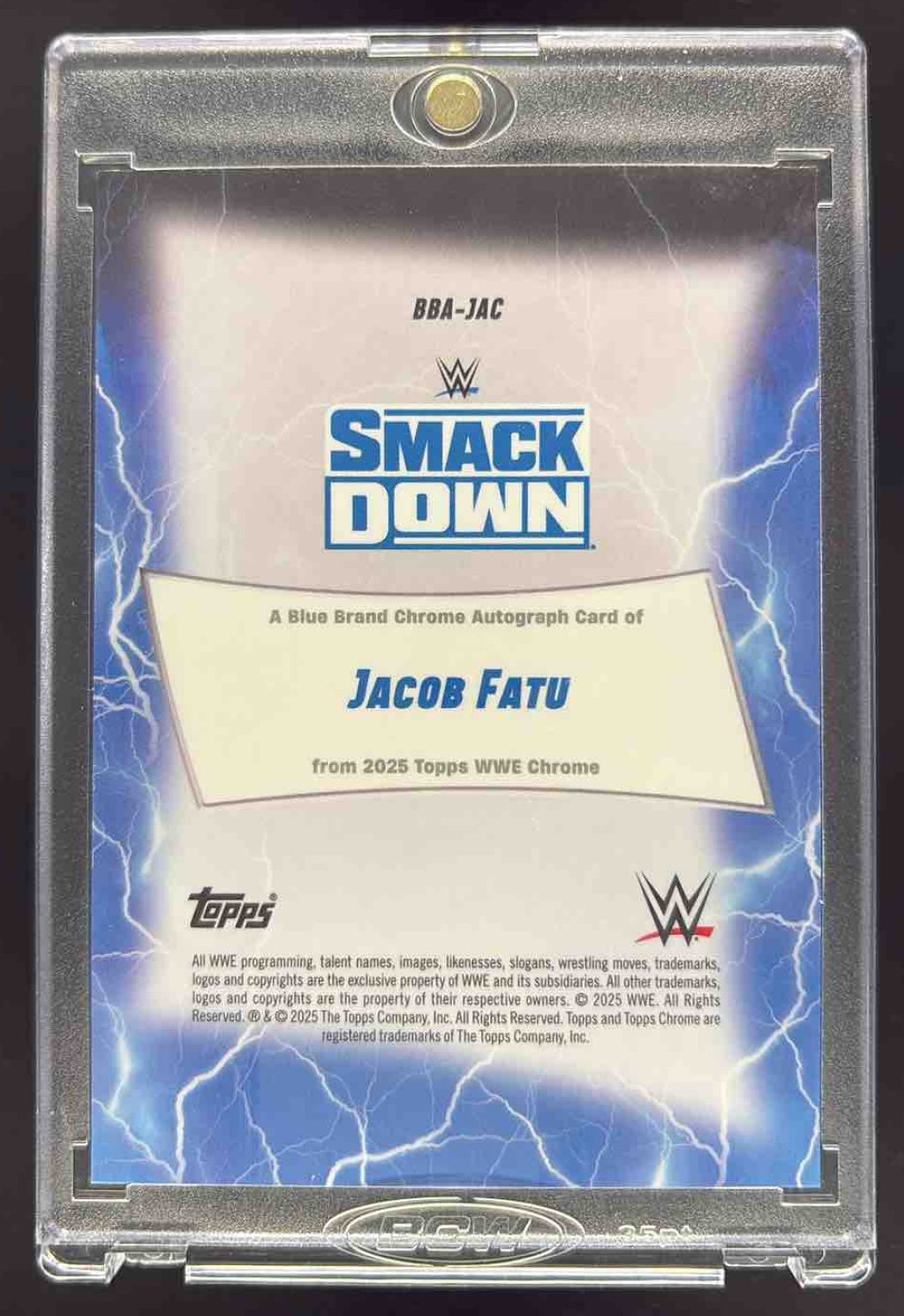 2025 Topps Chrome WWE Blue Brand Purple Geometric #BBA-JAC Jacob Fatu Auto /10