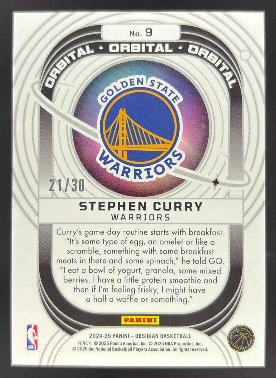 2024-25 Panini Obsidian Orbital Electric Etch Blue Flood #9 Stephen Curry /30