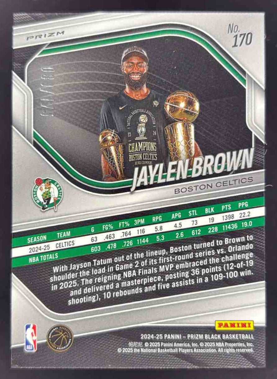 2024-25 Panini Prizm Black White Prizms #170 Jaylen Brown /175