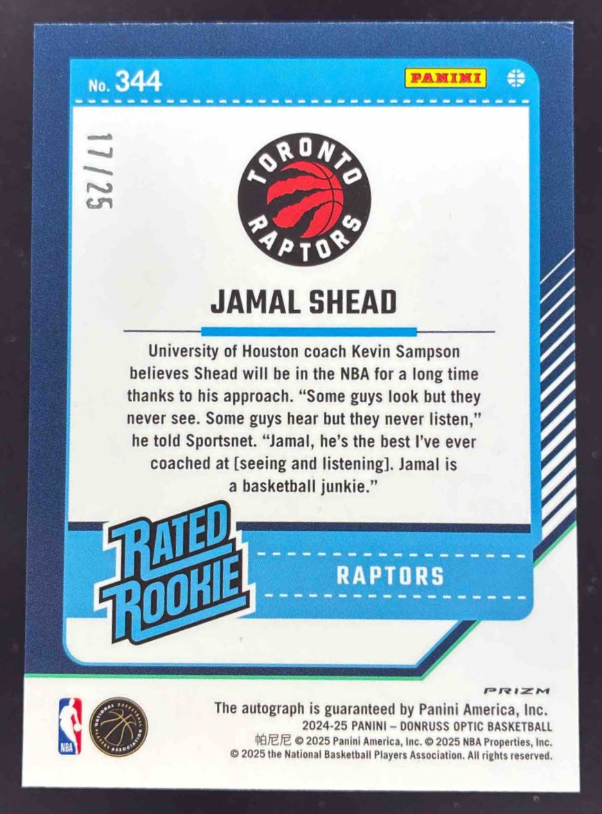 2024-25 Donruss Optic Rookies Signatures Fast Break Pink Jamal Shead RC Auto /25