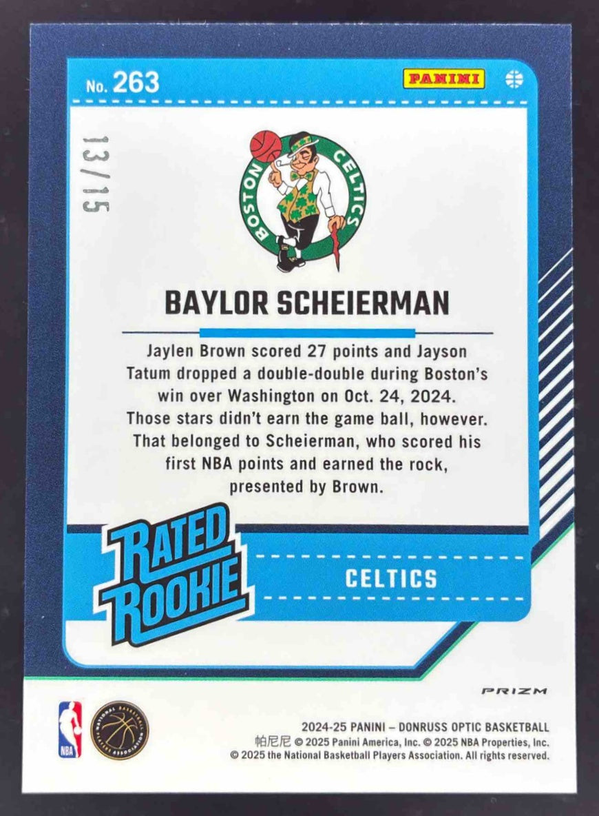 2024-25 Donruss Optic Rated Rookie Black Pandora #263 Baylor Scheierman RC /15