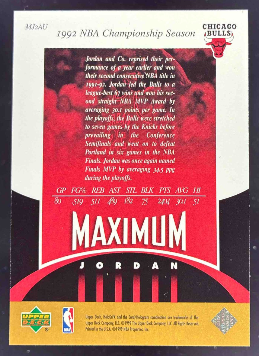 1999-00 Upper Deck HoloGrFX Maximum Jordan Gold #MJ2 Michael Jordan